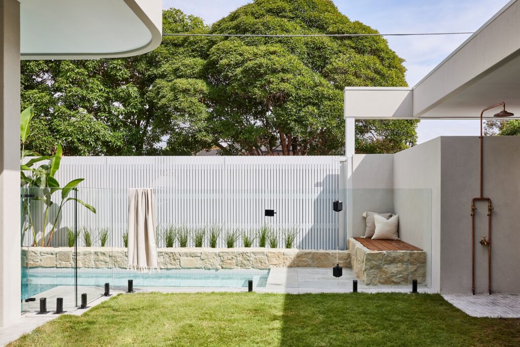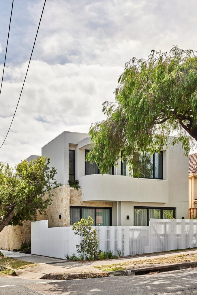 A beautiful modern mediterranean custom designed new home, with wrap around swimming pool and amazing external entertaining area. It has a basement and two more stories above to take full advantage of the corner block it is situated on.